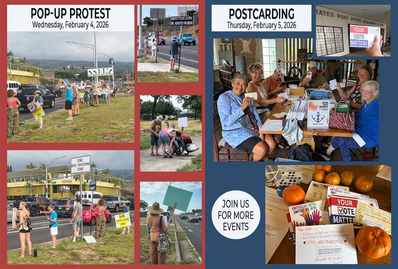 Aloha Reader, Yesterday was another difficult day. Federal agents killed Alex Pretti. Let’s remember him alongside Renée. Meanwhile, Noem and her bosses are lying, again, both to cover up their crimes and encourage more. This is a time for action, not despair. A year ago, we didn’t know how to channel our outrage, but the world is different now. We are well-organized and in just three weeks, we pulled off two pop-up protests with great attendance on very short notice, and held another rally...